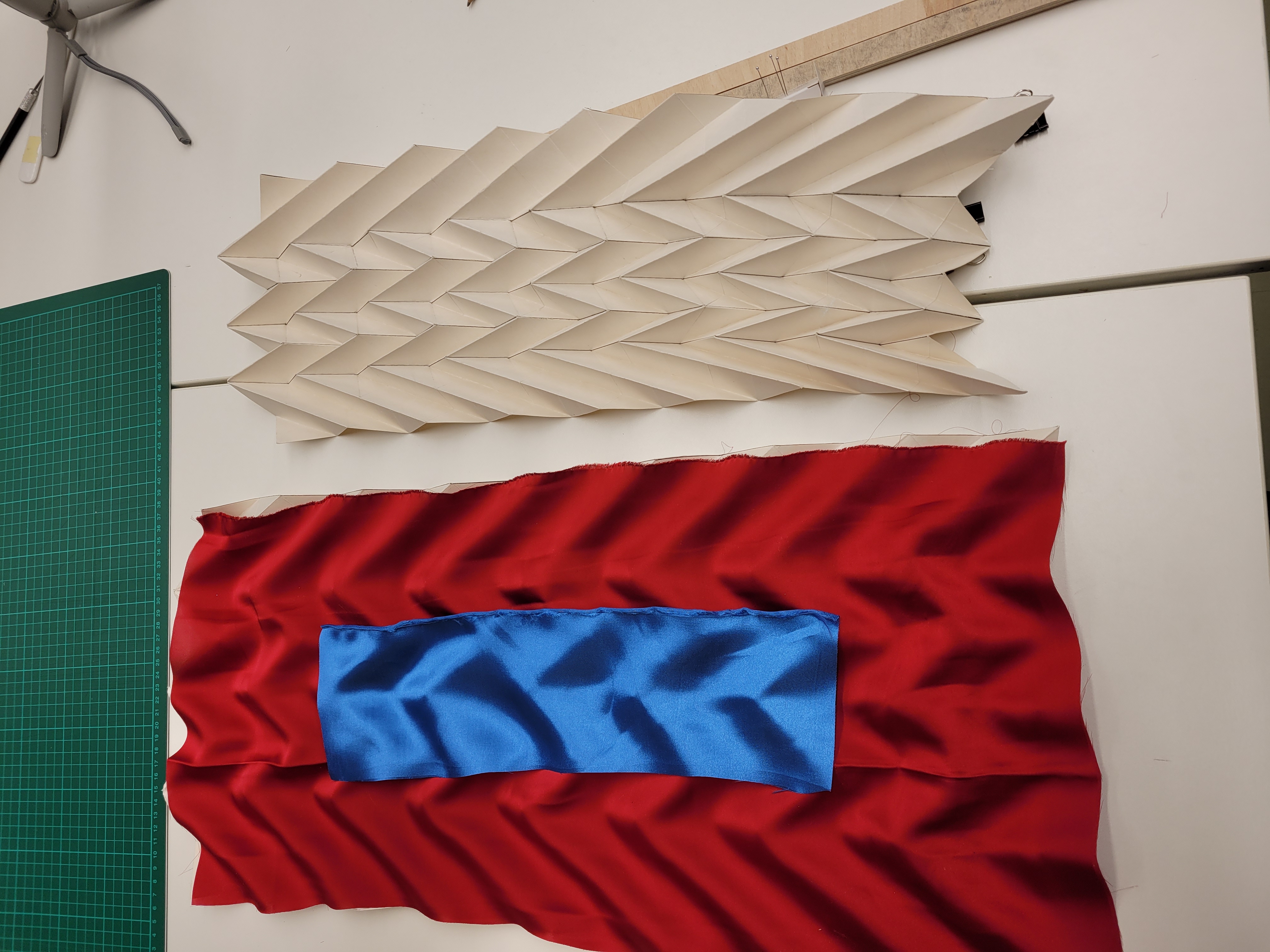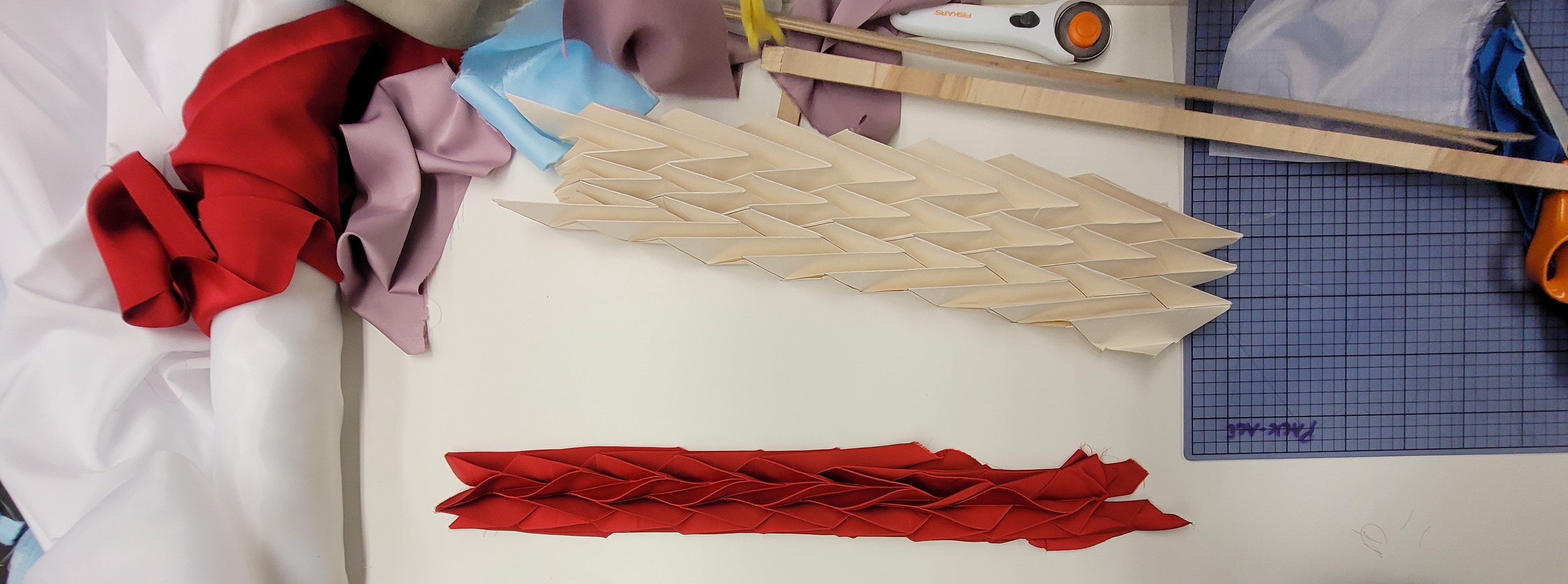 Laser cutting cardboard for for creating fabric pleats: