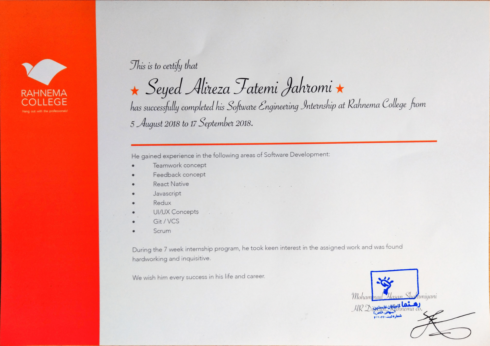 My team and I won 3rd in the Eleventh Sharif Festival of Entrepreneurship and Business Development (VC Cup).